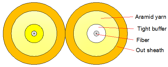 Simplex-Kabel verwenden Φ600μm oder Φ900μm enge Pufferfaser als optisches Kommunikationsmedium. Die enge Pufferfaser ist mit einer Schicht aus Aramidgarn als Zugentlastungseinheit umwickelt, die am meisten extrudiert wird, um eine Schicht aus (PVC) oder halogenfreiem Material mit geringer Rauchentwicklung (LSZH, raucharm, halogenfrei, flammhemmend) zu erzeugen.